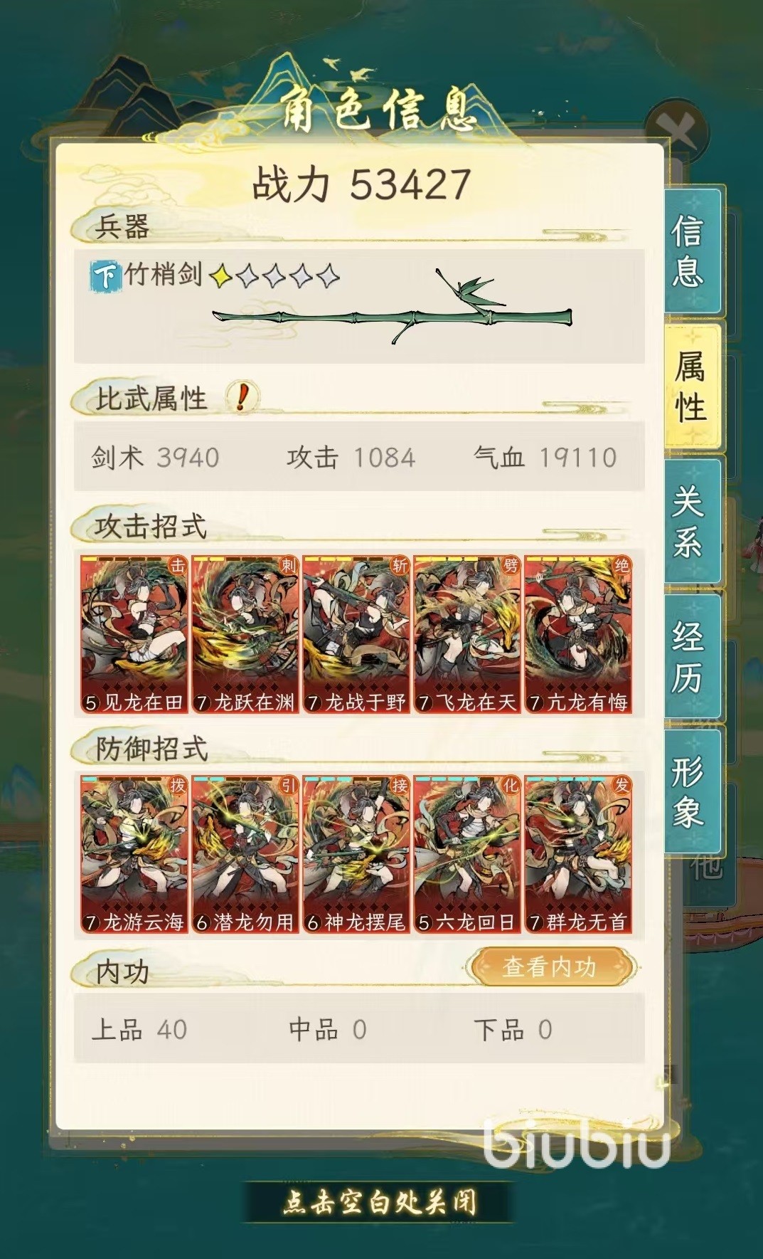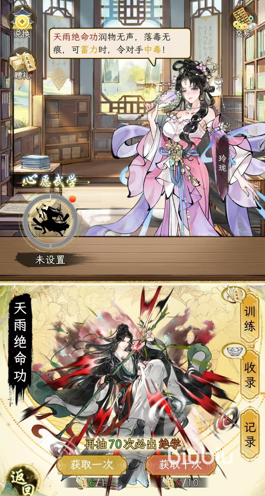 最后一个途径是拜师,在长期来看是平民玩家最友好,也是最稳定的获得红色武学的方式,而且这里还可以找到万书楼里抽不到的武学。和npc好感度达到亲密之后,就可以进行拜师,然后向师傅请教,每次请教都可以从npc身上的内功中随机抽取三个,选择一个进行学习,获得1%的学习进度。下一次请教的时候,必定会出现上一次请教的招式,所以不用担心选不到,每天只能请教10次,需要消耗体力。