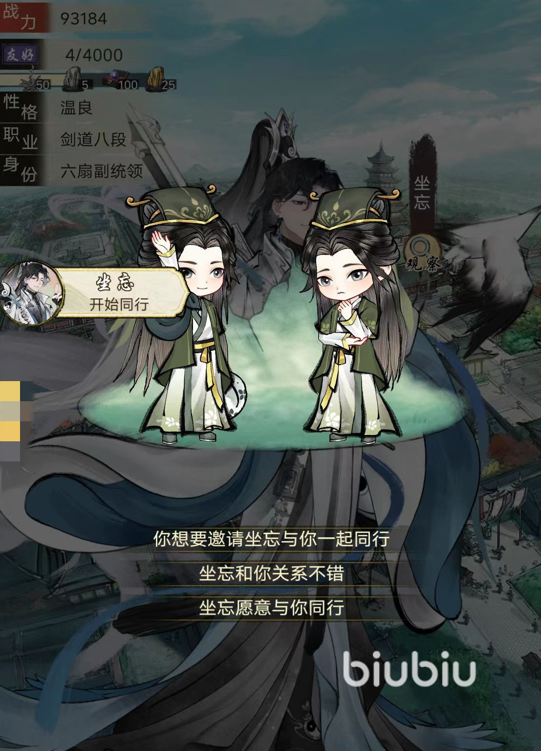 大家随意点击一个伙伴之后,可以看到有多个不同的选项,其中最重要的就是提升好感度,通过闲聊、互动等方式就可以提升好感度。如果要想让对方和自己同行,就选择其他,这里面有同行选项,但是解锁同行需要有一定的条件。大多数角色都是需要将好感度刷到友好之后才能解锁,而且有些角色即使好感度达标,也需要满足对应的战力条件,这样才能够顺利一起同行。