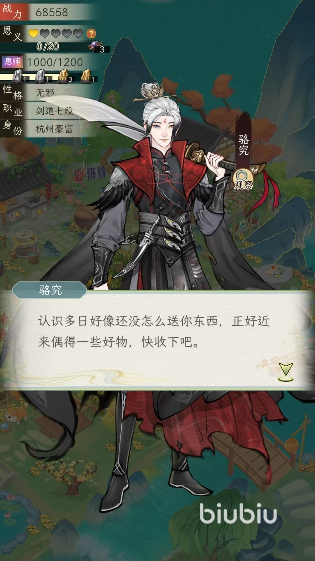 确定好礼物,然后在前往商城购买对应分类的礼物直接赠送就可以了,如果对方偏好文化类,那么就适合赠送书籍,喜欢享受生活的可以赠送美食。在最新的测试中,如果攻略的目标是绝代伙伴,那么对方是不收低品质的礼物的,所以这一点一定要提前做好准备,攻略绝代伙伴有着更高的要求。除了送礼物之外,也要注意日常的互动交流,花费一些精力和npc协议,虽然有可能失败,但是能增加好感度,也可以花费精力和对方闲聊,有概率触发额外的剧情同意。之后也能够增加好感度,日常对话或者是剧情选择进行互动也能逐步积累起来。