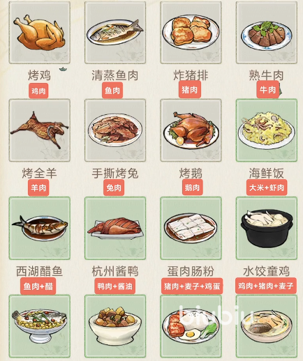 游戏中的菜肴没有一道是虚构的都是有现实映照的,这就是游戏中的菜肴了实在太多了,在了解了菜肴后接下来就可以来看制作方法了,这菜肴制造的时候需要先获取对应的菜谱,菜谱的获取方法有很多。