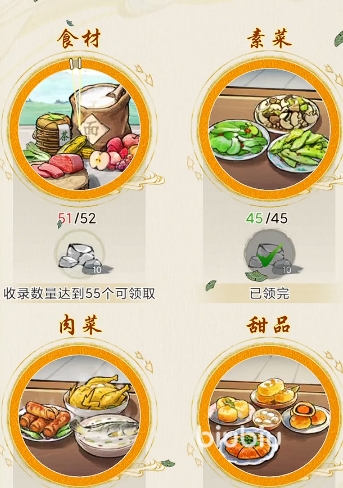 像是购买、完成探索获取等,这些方法都是可以获得菜谱的,在获取以后接下来需要做的是去收集对应的食材,这食材有很多大家需要对照自己需要做的菜肴去收集,就比如菜肴里有肉有蔬菜的话。