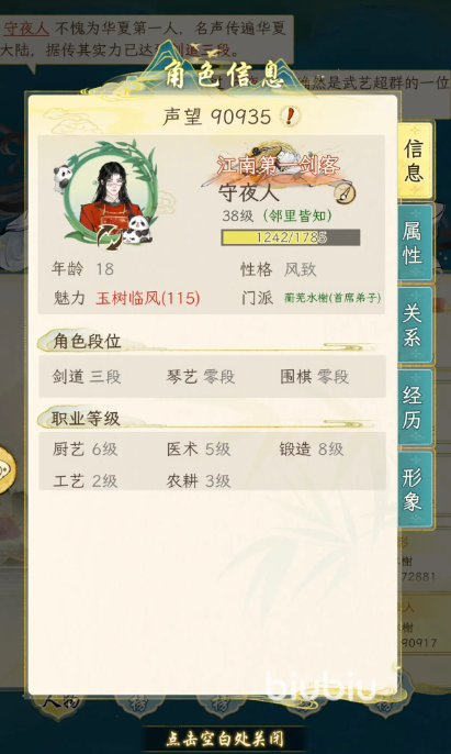 根据小编的了解,该角色在游戏的设定内是性价比很高的一个师傅角色,作为非绝代的npc,只需将好感度提升即可达到“亲密”关系且触发拜师,远低于绝代角色所需的2万好感度门槛,非常适合资源有限的平民玩家。