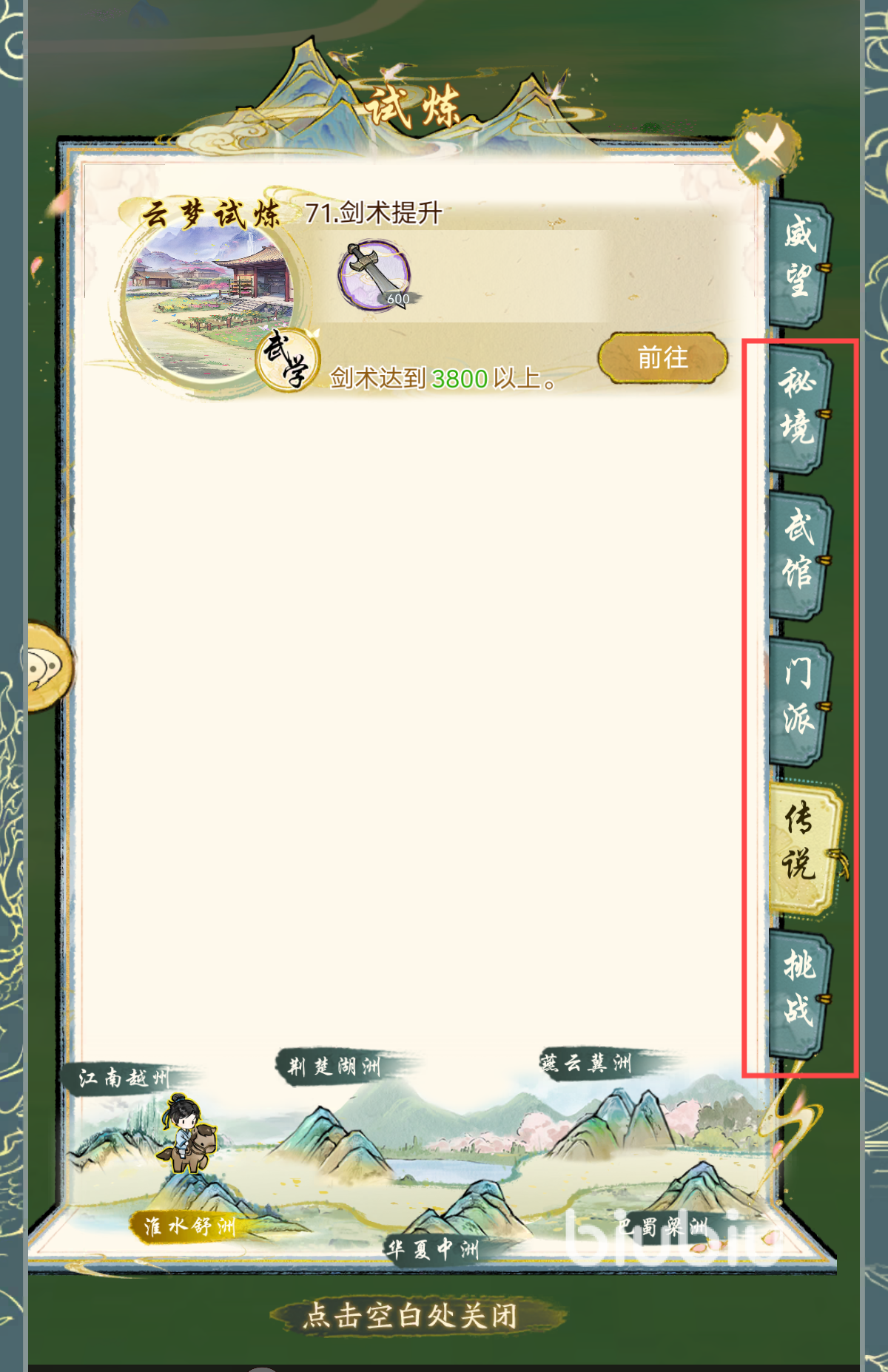 各城市有“算盘标志”的隐藏商人,可兑换紫色外功(杭州、开封、洛阳轮流刷新)。循环路线的话,就是杭州(辰时)→开封(午时)→洛阳(酉时)。奇遇任务奖励方面的话,可获得稀有武学(如《青莲剑歌》)、悟剑丹(用于突破武学等级)、剑意(升级内功/外功的关键材料)、NPC好感度(解锁特殊剧情或同行功能)。这些道具都很好用,可以提升大家的战力,并解锁全新的道具材料。