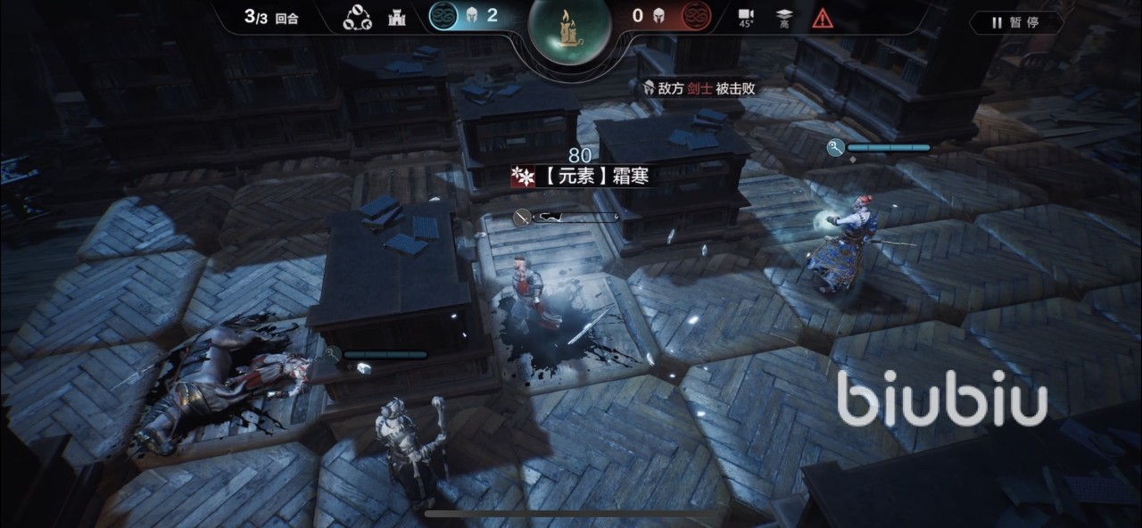 否则直接攻击可能会导致剑士离开当前攻击范围,最后无法完成三回合内结束的要求。然后就是根据剑士的移动,两个冰咒在最后一回合轮流攻击,即可把剑士击杀过关,以上就是环形战争15层的通关攻略玩法了。