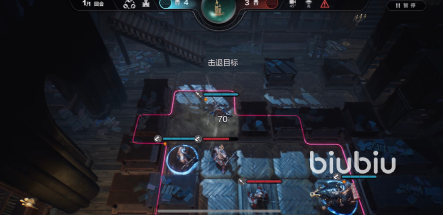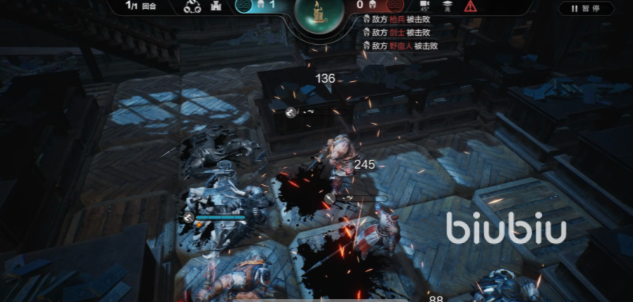 在这层战斗中我们要了解游戏内每个佣兵不同的定位以及作用通过我方佣兵的强制位移技能,将敌人集中在一条线上,最后通过斧兵的技能,一次性解决掉所有敌人。玩家先使用枪骑冲锋斧兵击退敌人。