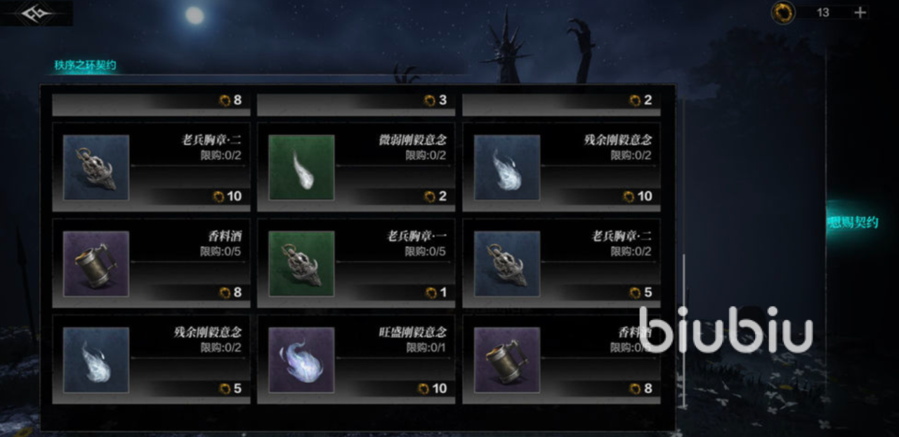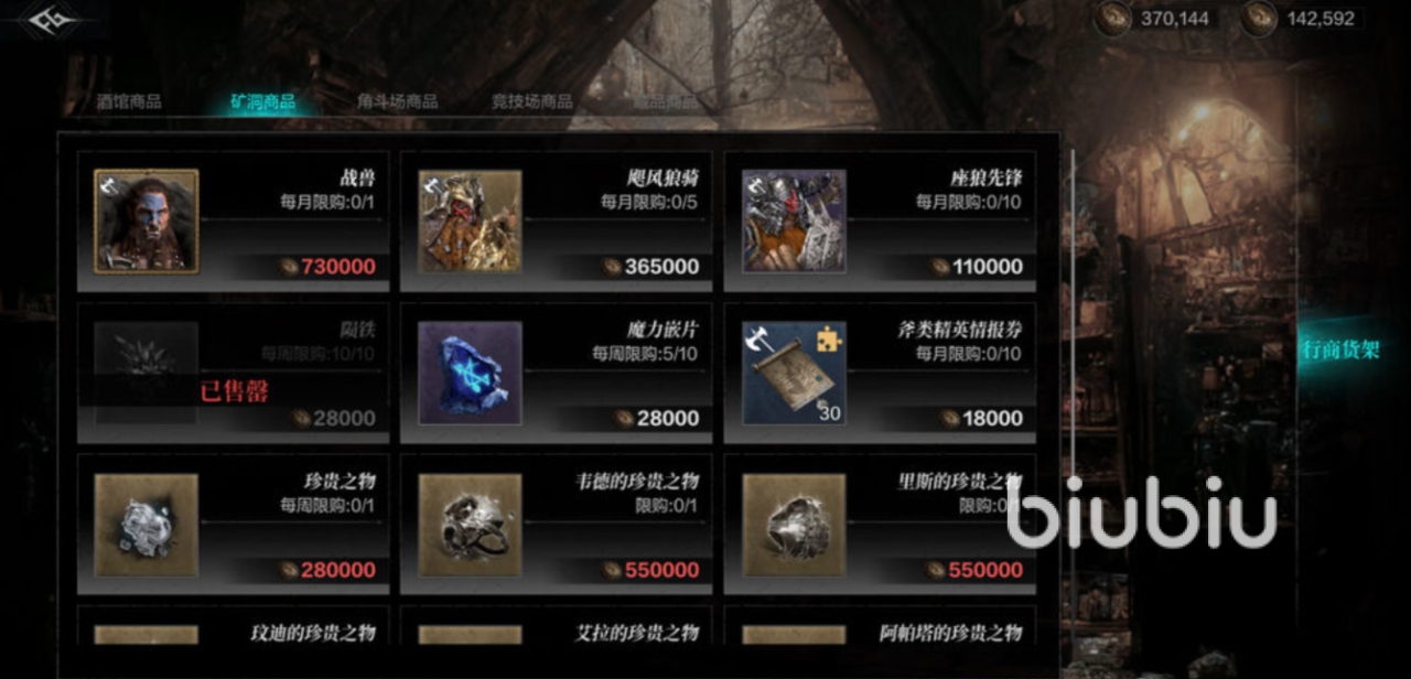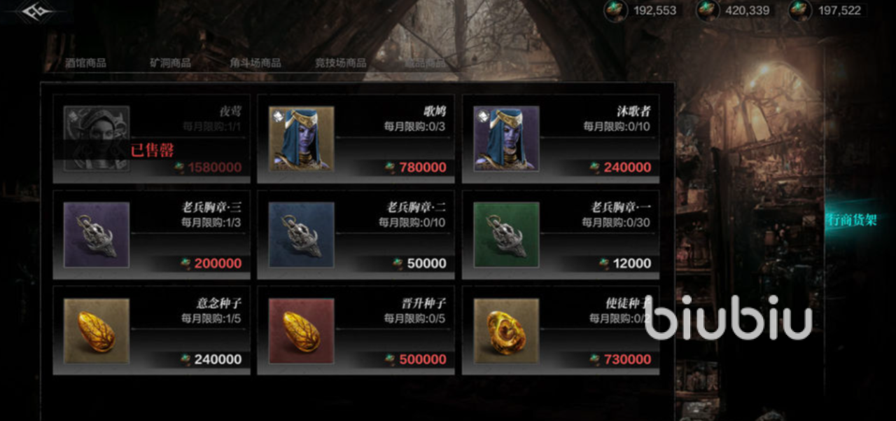 像其他的几个商店,建议还是先优先将限购的角色买了,然后再换一下老兵的勋章三,基本上也就差不多了。如果觉得不够的话,也可以前往一些相应地图的酒馆以及一些游行商人那边买一些材料,建议还是按照自己的需求购买。