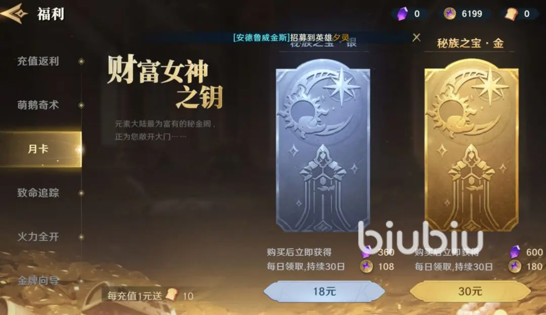 对于低氪档,除了月卡外,还可参与累成活动,不同的累充档位能获得不同的英雄以及技能,比如累充68,获赠传奇英雄加西亚,技能轰雷掣电+审判之眼。