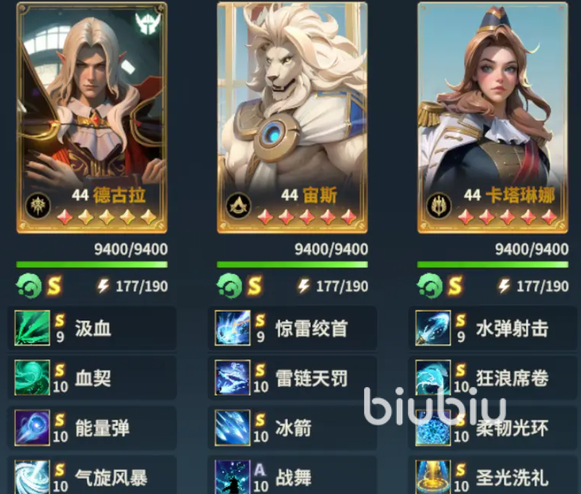 也可以组【宙斯凯蒂糖队】,宙斯:激流逆转 + 魔能牢笼;卡塔琳娜:气旋风暴 + 摄魂捕手;凯蒂糖:发令枪 + 欢乐颂。虽然缺少了特蕾莎的强力BUFF,宙斯在单核输出时会略显吃力,但有卡塔琳娜补位,携带气旋风暴稳定提供控制,同时用摄魂捕手增强续航。凯蒂糖则负责提高技能发动概率与净化,双重保障确保队伍整体稳定性,使宙斯的输出更持久。