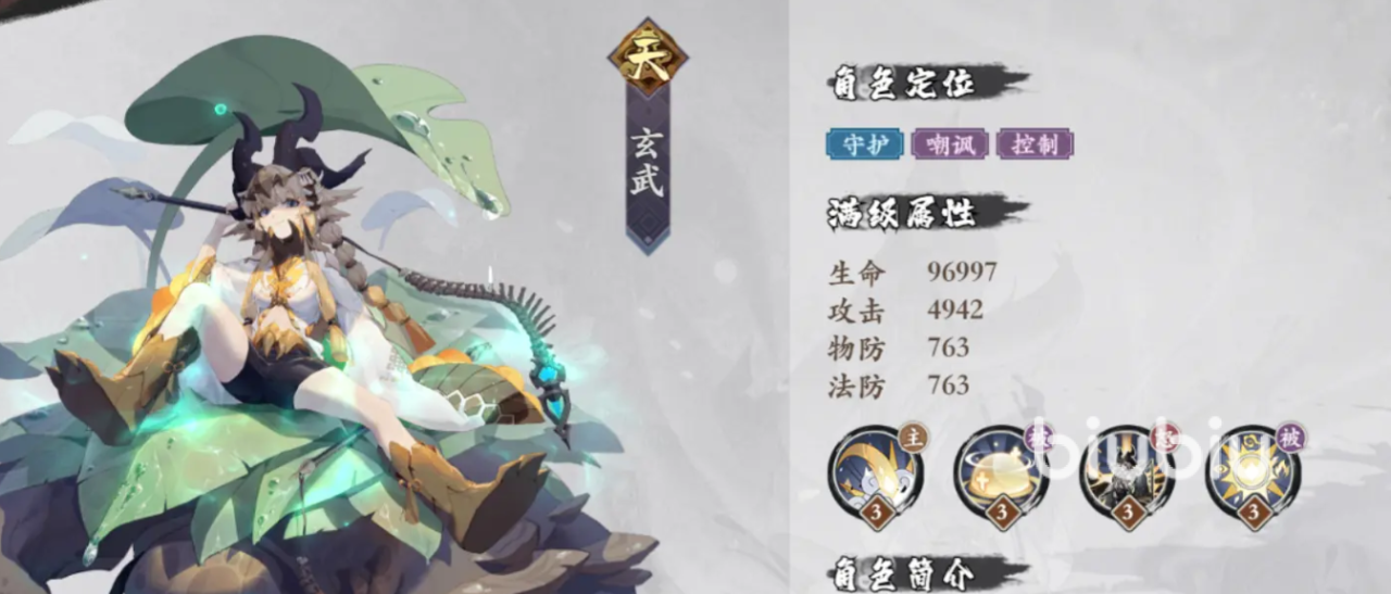 第二个技能则是真武,它能够提高15%的最大生命值,同时提高5%的伤害减免。三技能则是对敌人群体造成60%的物理伤害。对全体目标附加一个速度降低的效果。并且自身将会持续4秒进行持续攻击,每秒造成12%的物理伤害。最后一个技能则是对周围的友军增加重量。