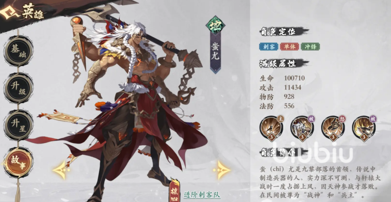 蚩尤的输出能力也很强,且能针对性的对敌方后排进行攻击,队伍中的女英能提升队伍的暴击和攻击力,额外提升这两个输出角色的伤害,基本上整个队伍生存能力超强,只需要耐心等待输出对敌方逐个击破即可。