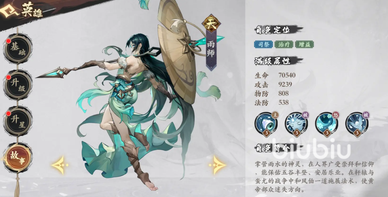 队伍中的雨师不仅拥有治疗能力,还能再治疗之外提高全队的受疗能力,进一步提升自身和神农的治疗能力,队伍中的主力输出是青龙和蚩尤,青龙的主动技能具有强大的法术攻击力,可以队敌人造成巨额伤害,部分技能还具备范围攻击能力可以同时对多个敌人进行攻击。