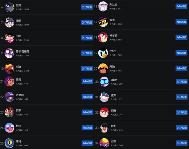 荒野乱斗英雄人气榜一览 被公认为完美的雅琪排第二
