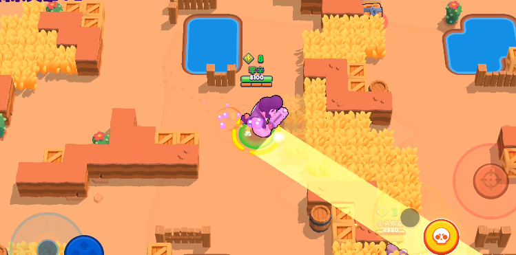 随后是大招的使用,大招最多见的使用方法是下图,右下方发觉了对手,此刻距离较远。她在墙面后边坐等过去,此刻直接可使用大招过去,大招撞飞敌人再补好一发攻击就能轻轻松松消灭了,也是的大招在面向好几个对手抑或状况不好的情形下,能够直接大招脱离作战,确保自身的平安,由于大招能够损坏地貌的关系全部不害怕被抵挡,大招同样是有很好的伤害,因此在状况不好的抗衡中以至能够在敌人群中快速攻击后大招收获加逃跑,这一个情况偏少,然而大多数局面大招能够用于追捕逃窜的敌人,还是要提示游戏玩家大招距离是固定不变的,别冲过了。