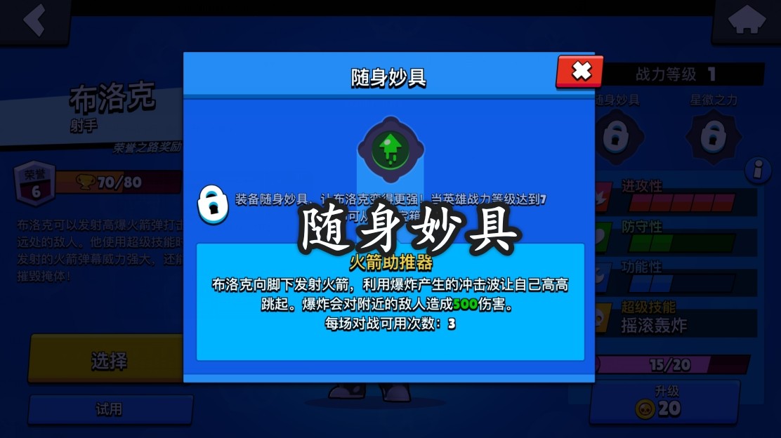 随身妙具:随身妙具出现以前布洛克这一个英雄的整体统计数据还是很差,但是呈现了随身妙具火箭助推器以后辣么该英雄则产生了1个很大的转变。该随身妙具的话能够变成布洛克1个非常有用的脱险技能抑或是位移技能。这一个爆炸的冲击波不单单可使得自身高高跳起还是会对范畴内带来1个500点的范围伤害,尽管相对低总比没伤害好。