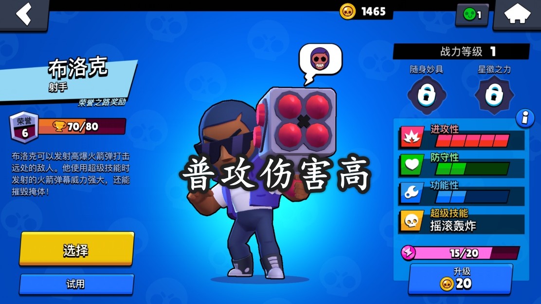 2021年03月17日 20:26 来源:铁蛋射手类型的英雄在玩法中都比较重要,要提供足够的输出才能够打出优势。布洛克就是其中比较高级的英雄之一,介于部分玩家不了解荒野乱斗布洛克怎么样。本次的文章小编就带来英雄的分析介绍,一起来了解看一看。