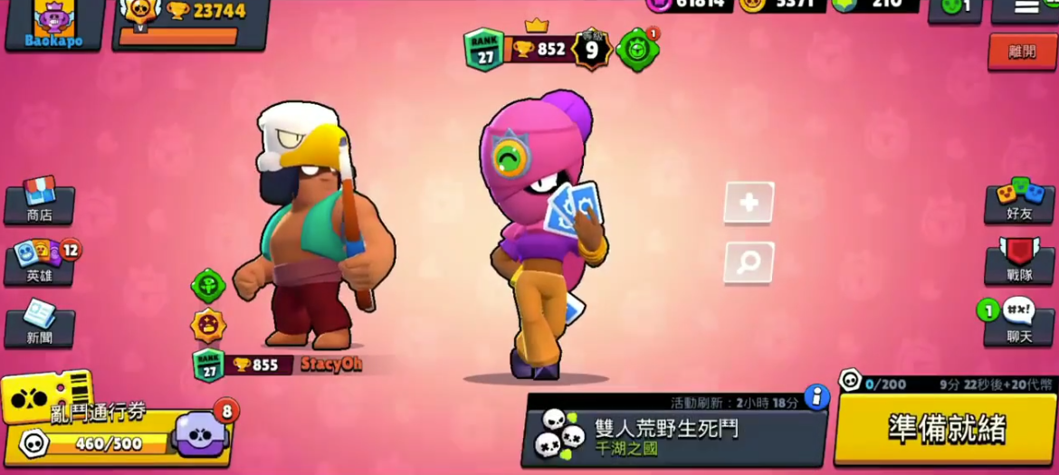 好了~上面就是这次的《荒野乱斗》高获胜概率双排搭配冲杯的所有教程啦~绝对记着不需要跟远距离+扔掷搭配硬打,这一个搭配的强悍在出乎意料和爆发,本来都不会是太硬,记着这个冲杯就容易哆啦~安息各位朋友的浏览。