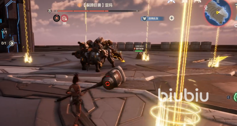 霸主级的玛卡,位于裂蹄原野,坐标(8290,9589),boss会冲撞,释放激光导弹,还有咆哮,每个技能的伤害都很高。可以考虑用大锤近战,或者弓箭远程。流程到这里的时候刚好解锁了大锤风属性的战技,而风属性刚好是克制boss的,作战前仍旧是准备老三样食物,出战的玛卡等级尽量高,要吸引boss火力。大锤近战的伤害高,主要以蓄力攻击为主,需要提前找位置站住蓄力,蓄力到闪光的时候有霸体,不会被打断,必要时刻可以稍微硬抗一下。