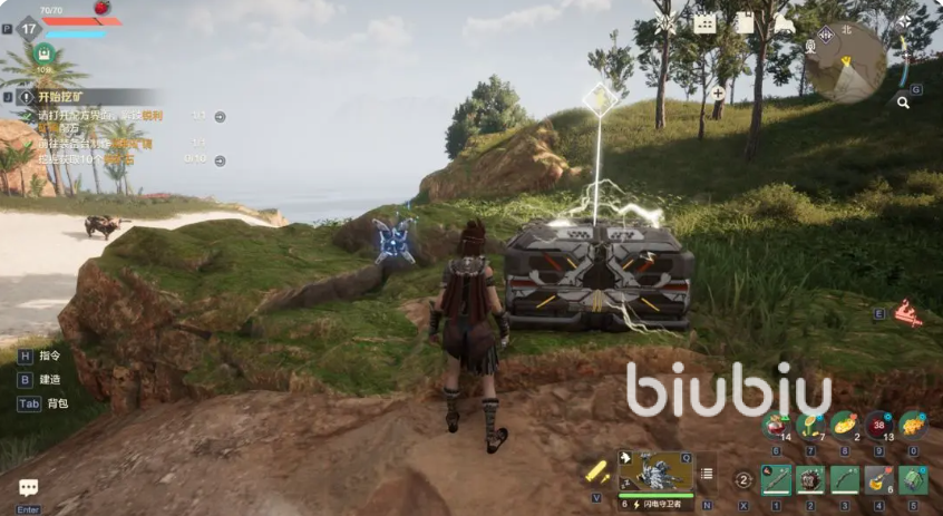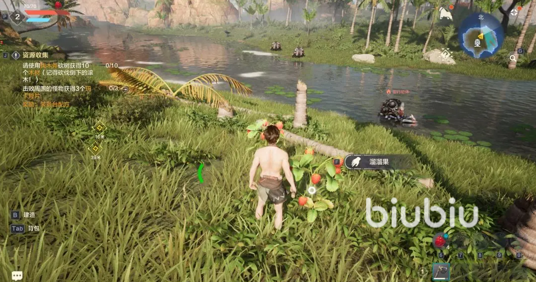 2、材料采集。木材是建设家园制作各种物品的必备材料,所以初期时尽量多采集木材,树木倒下是有伤害的,注意躲避,新手时期,路边的溜溜果还有香菇也要多多收集,这两个资源对后续的战斗以及生存都起到不小的影响作用。材料收集是有追踪功能的,只要在配方界面点击所需的材料,就能在大地图当中自动标记素材的区域位置,这样就能更快的到达需要收集材料的点位,去收集资源时,记得多准备几个储物箱,一次能多带点东西回来,并且控制好背包的负重。