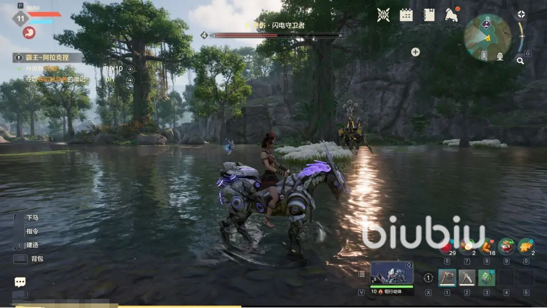 将基础的操作熟悉后,直接一路走到头,但是在沿路过程中,如果看到了地上有树枝,石头,溜溜果之类的,记得拾取。走到头就会看到第一个小BOSS“狂野的巨钳”,这个BOSS就是让大家加强刚才这些基础操作的熟悉程度的,小BOSS的难度不大,但是如果出了意外没打过也不用慌张,它不会回血,通过时间耗也能将其耗死的。
