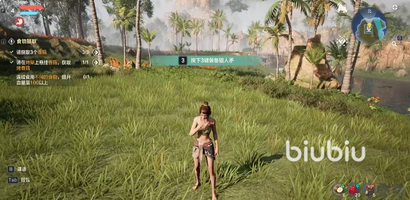 要准备三种不同的食物,推荐大家食用溜溜果,叶子,以及烤蘑菇,这三种食物能给角色提供75点血量上限,70点耐力值上限,每秒4点的生命回复效果,以及每14秒的耐力回复,并且会触发增加攻击的“吃饱喝足”增益buff,这样让角色在战斗中拥有不错的续航以及伤害。