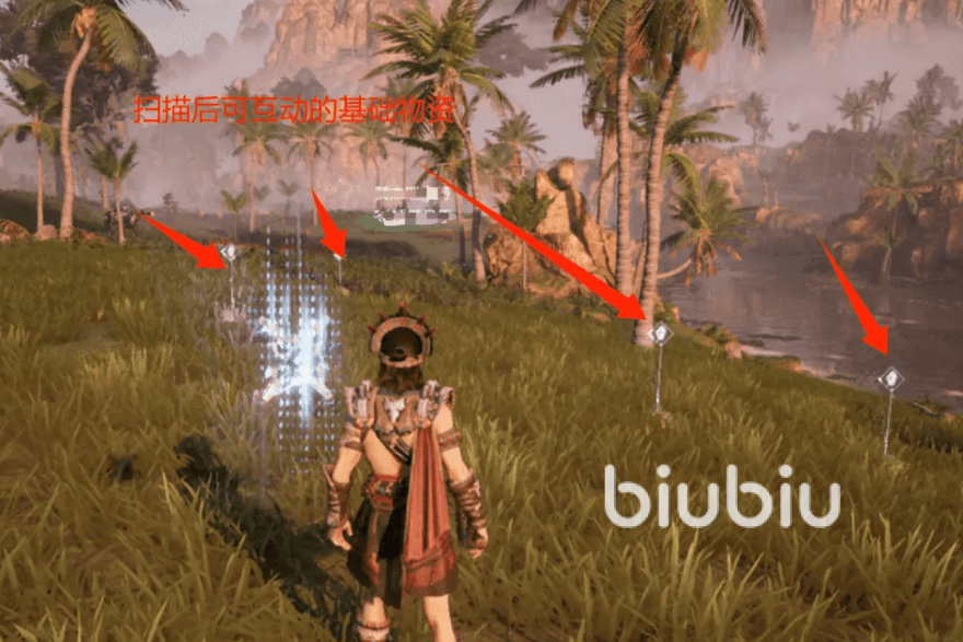 可探索物资主要分为基础物资和补给宝箱类,基础物资也就是周围可以直接采集的物品,大家可以在周边冒险时,利用扫描功能,这样周边出现的多处可互动物资都是可以进行采集的。