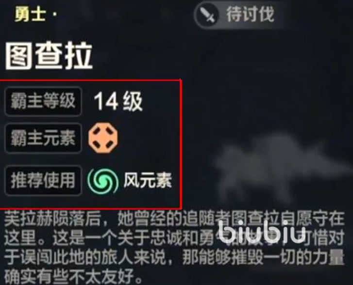 清理完小怪后面对boss图查拉,他的本体属性是岩会被风属性克制,使用的武器是一把大长刀,招式范围大家的同时伤害也比较高,不过有一个致命弱点那就是出招很慢,大家可以采用两种不同的打法。