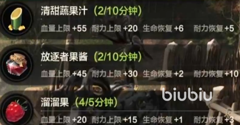 第1种是比较稳妥的,剑盾近战流,第2种是比较轻松的,远程输出流,另外不管选哪种战斗前准备好3种以上不同的食物,清甜蔬果汁、放逐者果酱和溜溜果,它们能提供120点血量上限,65耐力上限,和每秒9点的生命回复,触发吃跑喝足效果还能提升攻击力,让我们有不错的续航与伤害,玛卡方面有风属性玛卡就尽量带风属性的,没有就带等级高的,不过千万不要带电属性,因为会被克制。