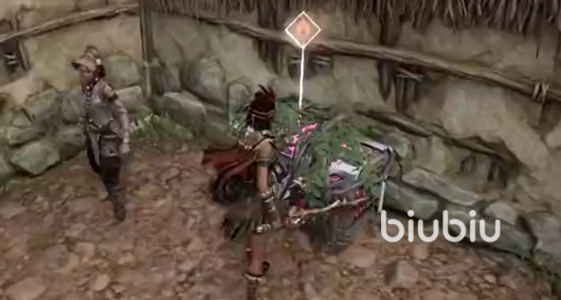 飞轮者的旁边有一个房子,利用有宝箱千万别忘了拿,出房间后左边有一个大山洞里面有一个玛卡蛋也不要错过,接着顺着小坡往上走清理完最后一波,就会抵达boss区域。