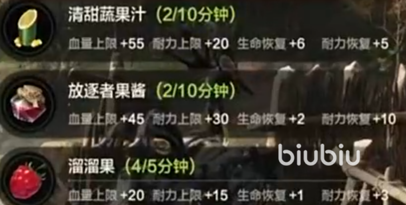 boss图查拉是岩石属性的,被风克制,使用武器为一把大长刀,招式伤害和范围大不过出招很慢,战斗前准备好下图中的3种食物,它们能提供120血量上限,65耐力值上限和每秒9点的生命回复并且增加攻击力。