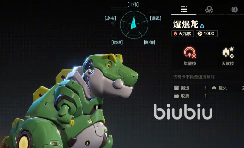 然后就是爆爆龙的战斗能力方面,虽然它也拥有天赋技能和觉醒技能,但是数值方面给得不太行,在前中期的作战倒是可以作为战斗力去消耗对面的血量,但是到后期各方面的数值已经不太行了,即便是参与boss战也会直接消失,所以还是用于后勤比较好。
