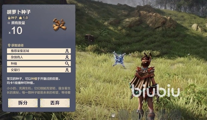 这里玩家除了野外收集外,也是能通过任务奖励和商店购买等方式来获取对应的种子。
