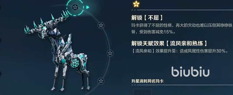 风属性宠物,兼具辅助、输出能力。觉醒技可以提升周围友军的伤害,天赋能够可以额外提供风属性伤害加成。体型上相比BOSS略有缩小,但还是大多数宠物都更更有存在感。技能伤害可观,攻击频率快,同时具备后撤闪避能力,在战斗中可有效规避伤害。尤其是其觉醒技提供的20秒内30%增伤效果,使其成为团队中极具价值的增伤辅助玛卡,适合追求高效作战的玩家使用。