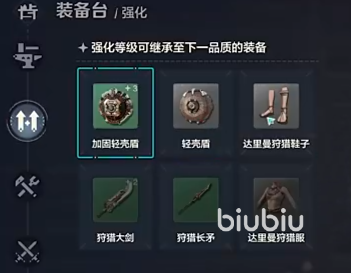 除了装备台能打造东西外,随身建造也能帮助制作出火把和木斧,装备台的第二个板块是强化系统,进行强化能提升装备的自身属性,在强化装备时,玩家需要合理分配自己的资源,避免出现材料不足,无法强化的情况。