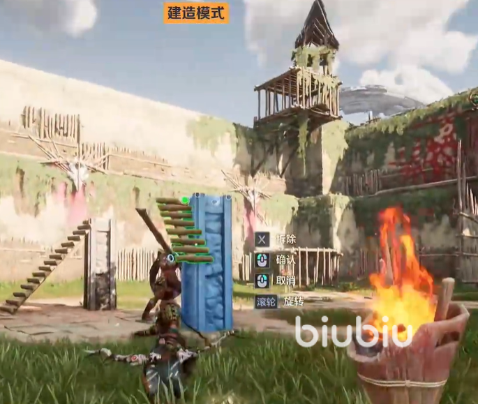 有时候boss会使用大范围的斩击,那么柱子上的阶梯会被直接打断,那么玩家就无法上去了,其实可以切换成建造模式直接再次安装阶梯,这样boss不论摧毁多少次,玩家都可以很轻松地跳到高台对boss进行全力攻击。