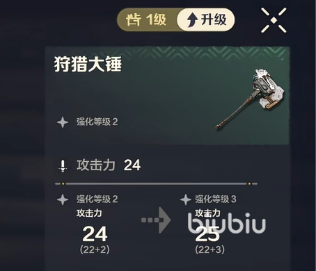 如果你没有强化的话,初始等级的攻击力加成为24。然后也可以进行强化,强化过后的话可以增加3点的攻击力,大家尽量资源足够的话,可以尽量将等级强高一点。对于新手区玩家来说,也算是一柄趁手的武器了,而且也能用来打造地形。