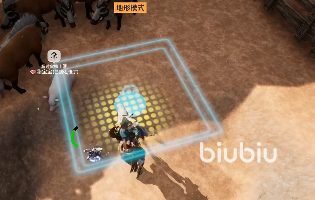 接着形成一整块的栅栏之后,还要有一块门。这样才可以避免山猪自己走丢,不过为了增加山猪的运动量,让它们的肌肉更加紧实。这时可以开启地形模式,接着再将周围的地形搞得凹凸不平。然后山猪上下活动时,自然会获得更多的运动量,让它们不会沉迷于睡觉。