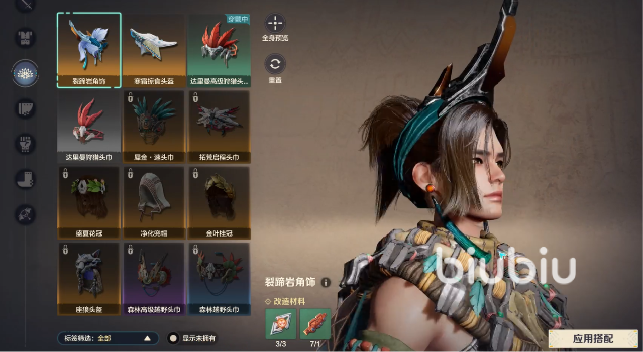 另外大家点击某一个涂装之后,右下角就会显示你当前所需要获取的改装材料。当大家拥有之后,就可以进行应用搭配了。这时就会消耗这些材料,并将你的外观更改为涂装的样式。当然如果成功佩戴之后,再次点击右下角的按钮,便是恢复原来的外观。