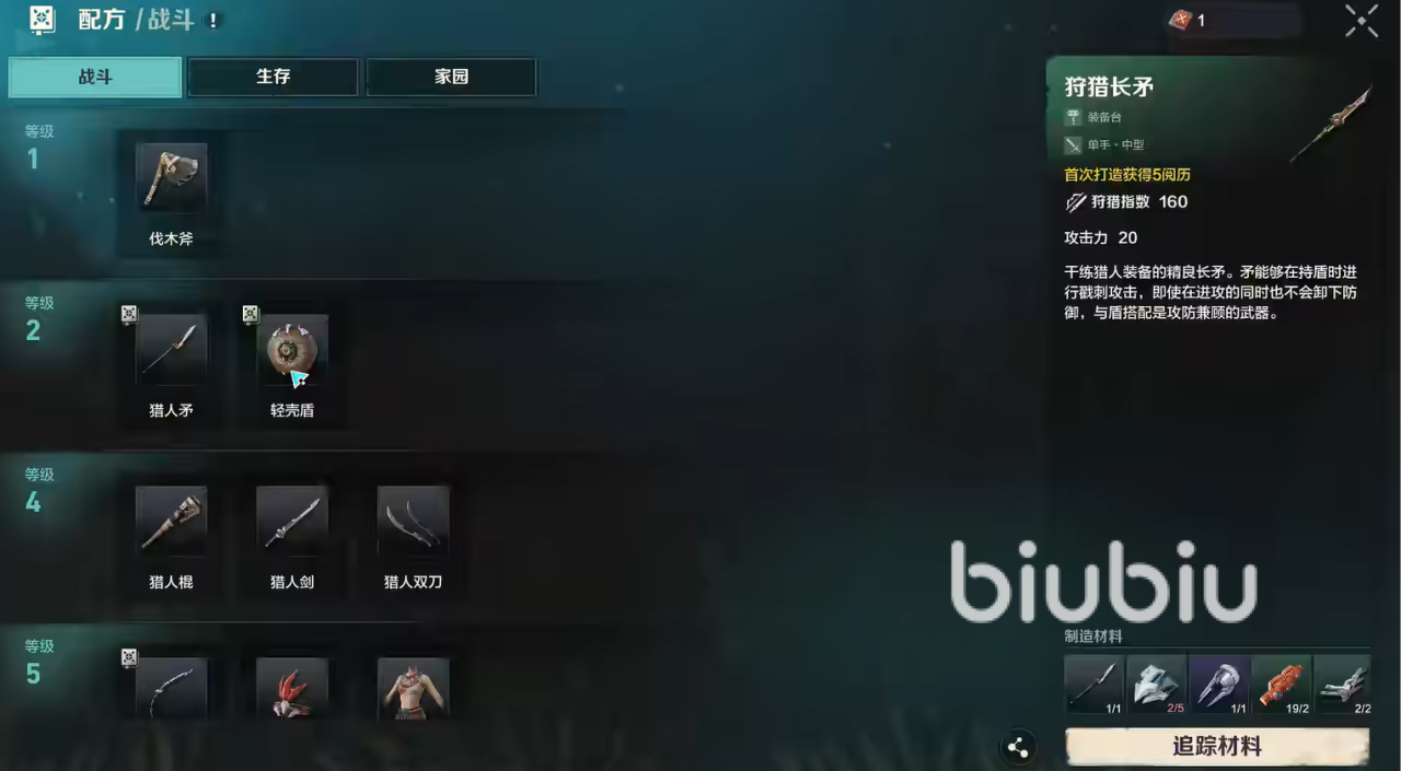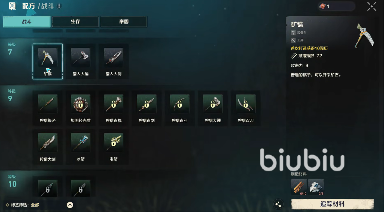 当大家的制造等级达标之后,那就可以准备制作的材料了,也就是10个木材加上3个稀有金属。要是不知道具体的位置的话,也可以直接点击追踪材料,最终即可快速找到。最后点击制作,就可以获得一把闪耀着金属光泽的矿镐了,手感非常好。