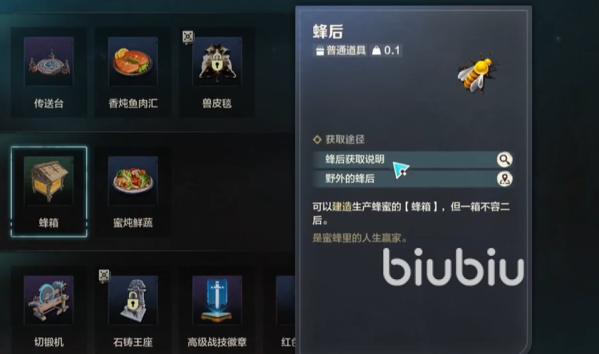 玩家们进入房间以后,会看到附近的墙壁上有一个蜂巢,玩家们需要将这个蜂巢彻底打碎,这时候就可以获得蜂蜜以及蜂后,而蜂后是可以进行饲养的,养殖在自己的基地内就可以每天都能会获得蜂蜜,这样就不需要频繁地去采集点进行采集,这样实在太麻烦了。