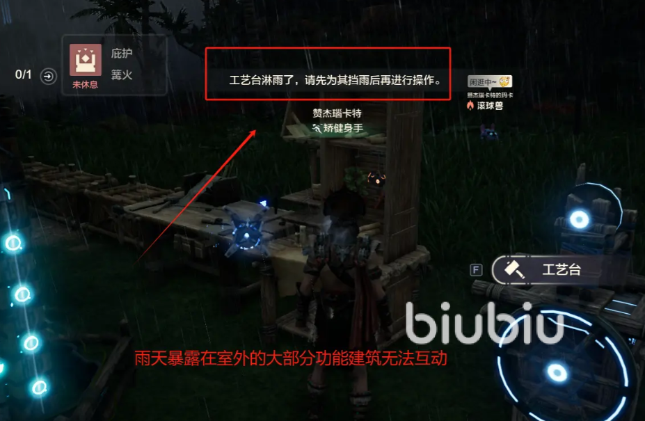 如果大家在建造家园时,不想过于消耗时间的话,也可以试一下简单遮雨的小技巧,大家只要在对应的物品上方建造一个简单的屋顶结构,就能挡住雨水完成相应互动。