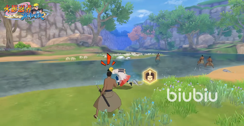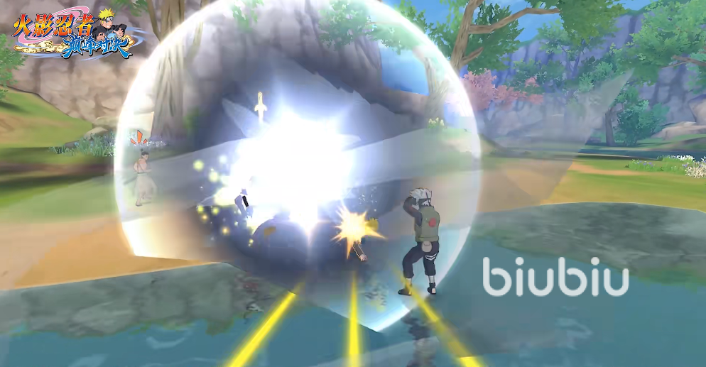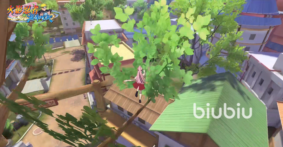 那么再给大家介绍下它的玩法亮点吧,它主要有两个亮点,其中一个就是世界的自由度极高,和其他动漫换皮游戏不同,该游戏中的世界是一个开放的世界,玩家不仅可以体验到原著中的木叶村全貌,还能自由的前往村子周围的池塘和草地漫游。