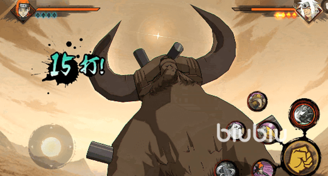 他的1技能“贯骨刺”会手持黑棒突刺并抓取敌人,命中后会转身大力挥砍,他的奥义会召唤出鸟在天空中飞翔,随后鸟会进行冲击抓取地面敌人,最后出现公牛向前方冲撞发动终极一击,如果抓取没有命中,公牛会在战场上能奔袭踩踏敌人。