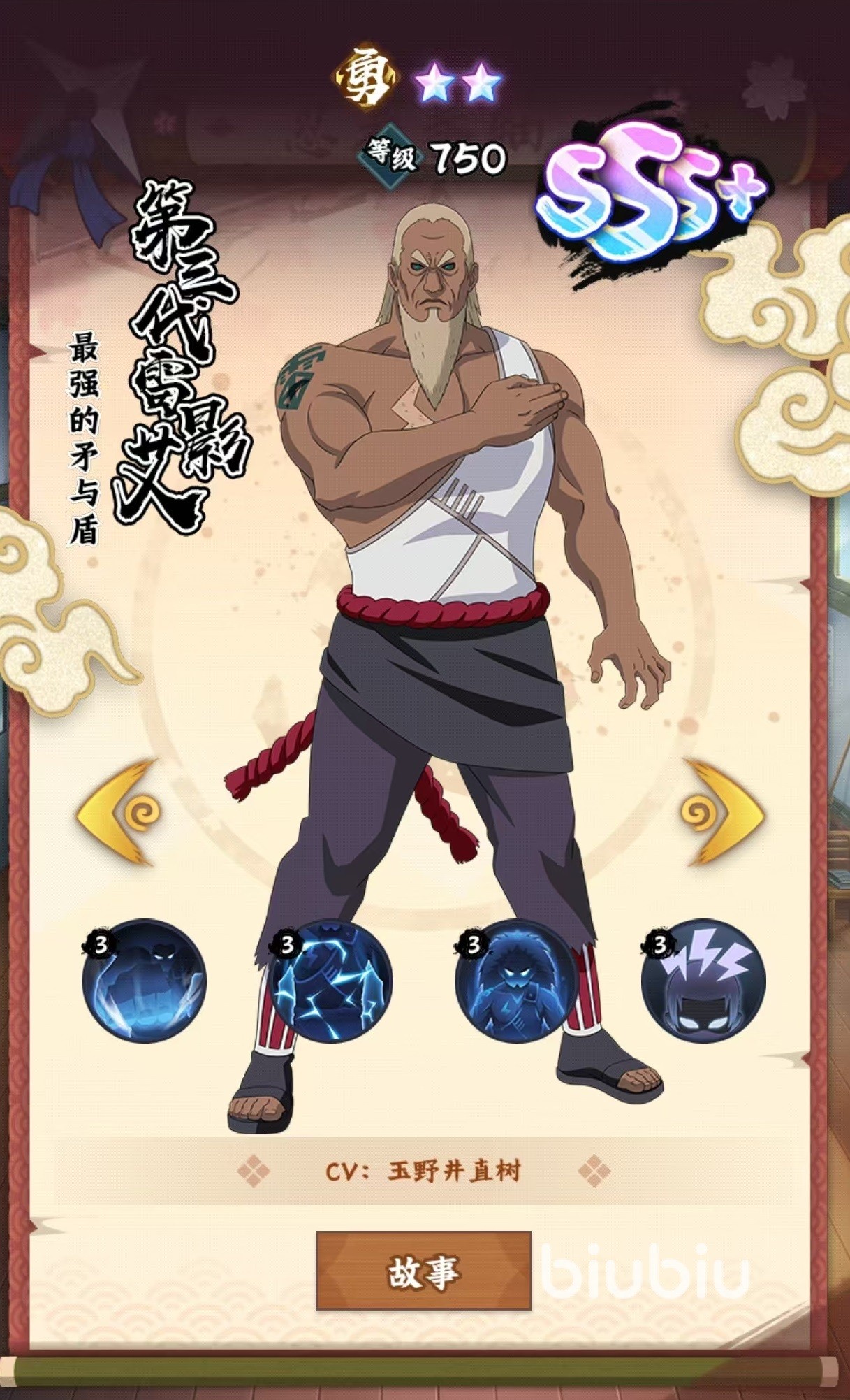 第4个推荐的是纲手,纲手在前期非常肉,而且也有输出,有一个纲手在,阵容就有了核心。而且这个角色用黄卷也可以招募出来,所以养成比较简单。大家可以在招募的时候,心愿单里直接填上纲手,另外两个选择三船和无。三船和无也是很推荐的角色,这两个都是比较纯粹的单卡,就是自身比较强,但是没有固定的体系,所以放到后面,在后期用于特殊战斗中的补位来使用。