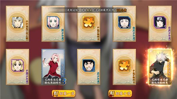 但是升星并非这件简易的事,要朋友预备很多的相对应忍者的碎片,而该碎片的首要产出渠道是招募。当朋友买入相对应忍者以后,假如再度招募出该忍者,那这一个忍者便会转换为碎片,朋友能够用于提高相对应忍者的五星。