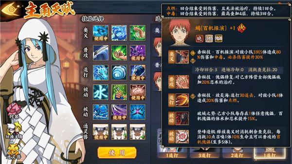 我们从“蝎【百机操演】”的技能特征上能很容易的看出,“蝎【百机操演】”的有两个发展前景,需要很多的召唤傀儡,以便于来提升“蝎【百机操演】”的忍术和体术,在这之后,借助奥义和追拨打可以去处理对手,但很多召唤傀儡是需要充分条件的,那便是“查克拉”数量够了,不然这永远都是空口说。