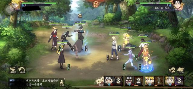 忍者学员们应当也发觉了,新的忍考关卡难度在平行线回升,仅仅五关,总有很多人物让咱们印像深入:171暴击率很高的手鞠、172暴击伤害暴增的鸣人、173自信霸体的蛇叔和“内置微风套”的角都、175闪避且霸体的二代+止水……