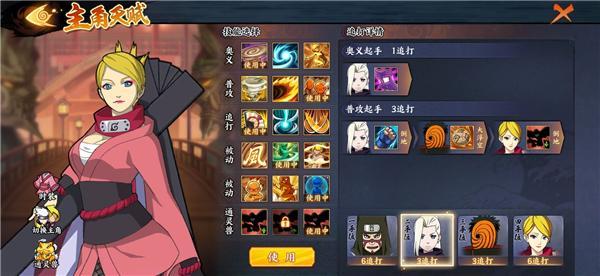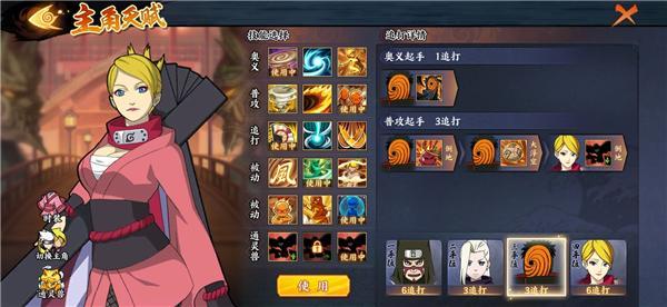 该阵容是由风主“疾风舞者”、“勘九郎【疾风传】”、“井野【少年篇】”和“阿飞”组成,在风主的天赋选择上要根据13123的次序;通灵兽方面则发动选择“乌鸦”的第3个技能,这么做的关系有2个,一要“乌鸦”获取搞出“目盲”的力量,二是在“乌鸦”追打的助力下,队伍忍者的均匀追打频次不会少于3。