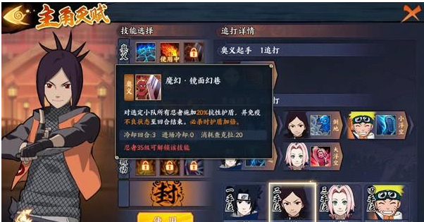阵容搭配方面,考虑到看官大佬们初期忍者数量不多,可以搭配的也比较少,因此提议火遁系技能。忍者方面可以搭配系统赠送的B级鸣人【少年篇】、A级忍者佐助【少年篇】和首冲A级忍者李【杜门】。这套搭配阵容,不管是火主的大翻腾、击退或者是垮台特殊效果,都能二者中间他忍者组成追打,不管是单体爆发或者是群体伤害,都能轻松灭打怪人。
