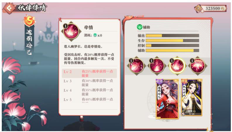 总的来说,迪丽冷巴定位是辅助功能,其中技能最厉害就是其中的拉条回能,拥有这些技能的迪丽冷巴,就可以算得上是狐妖小红娘手游中最强的辅助。如果可以和单体高输出或者群体输出的卡牌组合,轻轻松松就能掌握战局的胜利。所以,迪丽冷巴定义为辅助型卡牌还是非常好用的。