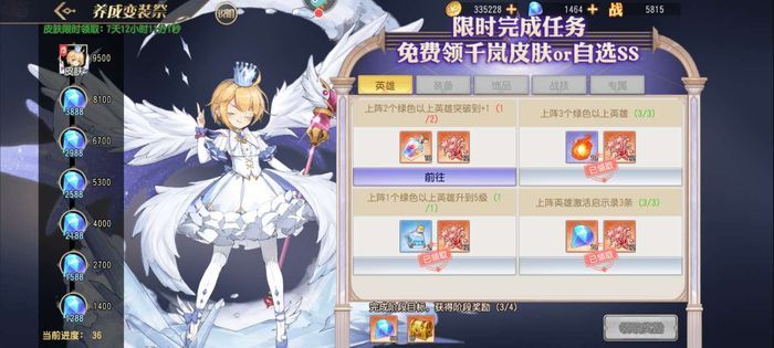 游戏内的皮肤·是需要通过活动养成变装祭来获取的,该活动小伙伴们可以点击屏幕右侧的按钮进行参与,该活动总共分为5钟类型的任务,分别为英雄,装备,饰品,战技,专属。也就是提升阵容实力的五大养成玩法。小伙伴们在完成这些对应任务之后,达到对应的进度值就可以获取奖励。